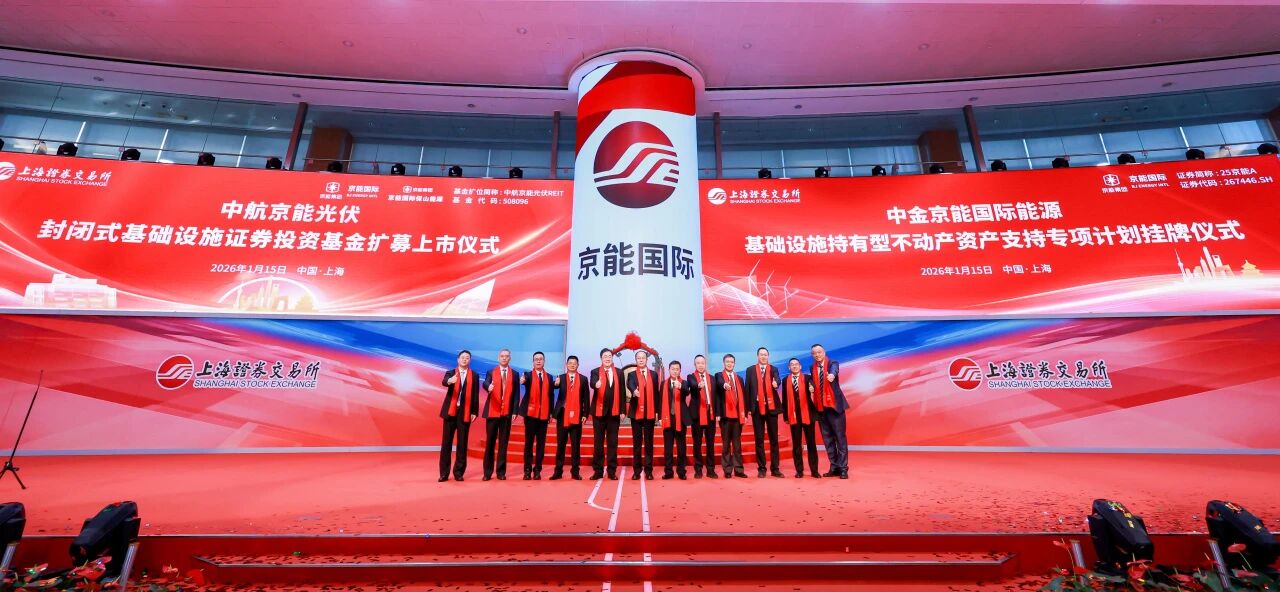 1月15日,上海证券交易所内锣声铿锵,京能集团迎来资本运作与绿色发展深度融合的重要时刻:中航京能光伏封闭式基础设施REIT(交易代码:508096)扩募发售仪式与京能国际能源持有型不动产ABS(证券代码:267446.SH)挂牌仪式同期举办,实现“一日双响”的跨越式突破。北京市国资委党委委员、副主任贺昂,京能集团党委副书记、总经理李育海,副总经理陈国高出席仪式并致辞,并与云南省保山市人民政府、京能国际等相关负责人共同为两大产品鸣锣开市,见证首都能源国企在绿色资产证券化领域的又一里程碑。